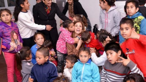 La titular del Ejecutivo Provincial concurrió acompañada por dos de sus hijos, y de esa manera sorprendió gratamente a los 40 niños y niñas que habitan en dicho lugar.
