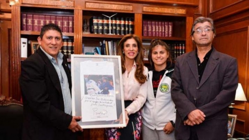 Además, Noelia Ponce también le hizo entrega de un regalo traído desde Dubái, agradeciéndole por el apoyo recibido para que la joven santiagueña fuera a participar del Mundial de judo.