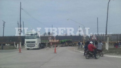 Un estruendo alteró la calma de la ciudad de Forres, departamento Robles, cuando un camión cargado con una maquina agrícola fue envestido por un tren carguero.