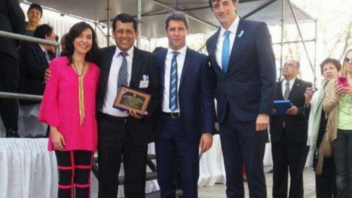 La ministra de Educación de la provincia, Dra. Mariela Nassif, en compañía de quien fuera elegido como el Maestro Destacado del año 2016, Juan Antonio Tévez, docente de la Escuela Nº 296 "Ciudad del Rosario", del paraje Chilcan en el departamento Sarmiento, participaron del acto central del Día del Maestro, que se llevó a cabo en la ciudad de San Juan, en la casa natal de Domingo Faustino Sarmiento, el pasado domingo 11.