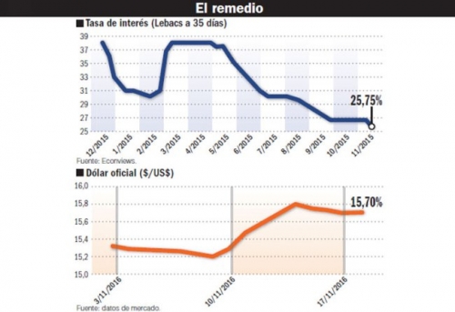 En el Palacio de Hacienda ven con buenos ojos la baja de tasa, un viejo reclamo de Alfonso-Prat Gay. Y si bien prometen “cuidar el déficit fiscal”, para contrarrestar también los cuestionamientos del titular del Central, Federico Sturzenegger, analizan algunas medidas para ampliar los reintegros a la exportación en algunos sectores donde haya problemas de competitividad.Algunas empresas cuestionaron la demora de los reintegros. “Hay algunas tardanzas pero estamos mejor que con el gobierno anterior”, reconoció Enrique Mantilla, presidente de la Cámara de Exportadores.