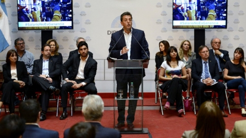 'Se trata de construir desde el Congreso correcciones para que el Gobierno entienda que la gente está mal, que la plata no le alcanza. La economía argentina funciona cuando el jubilado y el trabajador tienen plata en el bolsillo', dijo Massa, en una conferencia de prensa que lo mostró como jefe de la oposición. Parado frente a un atril, delante de una pantalla que decía 'El salario no es ganancia', tenía sentados a sus espaldas a diputados de las bancadas que firmaron el pedido de sesión especial.