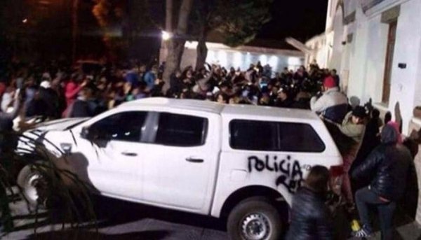 Por momentos, la gente golpea contra las rejas de las residencia que se encuentra custodiada por la policía de la provincia, en tanto, que la infantería que se había dispuesto en la calle fue replegada al interior de la jefatura de Policía ubicada a escasos metros de la residencia.
