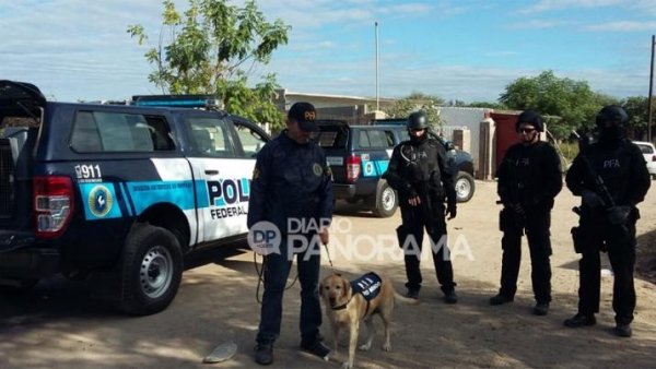Según indicaron fuentes allegadas al procedimiento, son tres allanamientos en simultáneo, donde detuvieron a varias personas y secuestaron estupefacientes y armas de fuego. Los uniformados además utilizan a Mora, la perra antinarcótico.