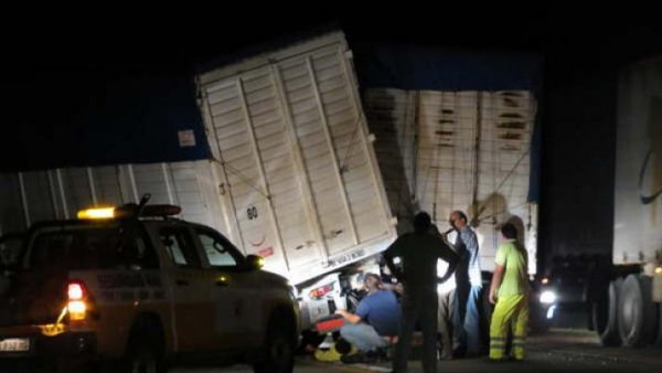 LAS TERMAS, Río Hondo (C). Una vez más la ruta nacional 9 es el escenario de un grave accidente de tránsito y por fortuna no terminó en una tragedia. Según informó la policía que trabajó en el lugar, el siniestro fue protagonizado por cuatro vehículos y dejó un saldo de seis heridos, uno de gravedad, y serios daños materiales. El accidente se registró pasadas las 20 horas de ayer, sobre la mencionada vía, a la altura del kilómetro 1183 en la localidad de Chañar Pozo, donde de acuerdo con lo narrado por los involucrados, un Toyota Etios de color rojo fue el que desencadenó el choque. Según las fuentes, el conductor del Etios sobrepasaba a gran velocidad a todos los vehículos, mientras circulaba de sur a norte, y al llegar a una lomada quiso sobrepasar a un camión, advirtiendo a último momento que en sentido contrario transitaba un Ford Falcon. Los efectivos que trabajaron en el lugar revelaron que el último vehículo mencionado se largó a la banquina para impedir el impacto, idéntica maniobra hizo el chofer del Etios. Mientras que en otra maniobra desesperada, el conductor del Falcon quiso retomar la ruta, pero hizo un trompo y se pasó al carril contrario. Una vez en la otra calzada, el Falcon fue impactado al costado de la parte de atrás por una camioneta Volkswagen Suran, que se dirigía a Tucumán, la que frenó para evitar una mayor colisión y fue chocada desde atrás por un camión Scania, el cual por la abrupta frenada quedó "doblado" en la ruta con sentido sur y su acoplado con sentido norte, ocupando la totalidad de la calzada. Tras el choque, el Etios continuó dándose a la fuga, mientras que una mujer que se trasladaba en el Falcon salió despedida quedando tirada a centímetros de las ruedas del camión. Inmediatamente personal de la policia vial de Chañar Pozo llegó al lugar realizando todas las tareas de prevención, descomprimiendo el tránsito para el arribo de las unidades de emergencia, que trasladaron a los heridos. En la Suran se conducía una mujer de apellido Arrieta, de la provincia de Tucumán, en compañía de su madre, su hijo y un menor; mientras que en el Ford Falcon, se movilizaba Leonardo Argañarás, de la ciudad Capital, quien lo hacía acompañado de un amigo y la esposa de éste. El otro involucrado fue un camión Scania. Los heridos resultaron ser: Manuel Tito Palomino (55) con excoriaciones y golpes en el pecho, y su esposa Silvia Adriana Pesce (53) con corte en pierna derecha y fractura de húmero derecho, ambos de la ciudad Capital, a bordo del Falcon. Mientras que los ocupantes de la Suran, Rosa Angélica Gallo, de 63 años de Banda del Río Salí, y Fabricio Exequiel Arrieta, de 16 años e idéntico domicilio, resultaron con excoriaciones varias. El chofer del camión resultó ileso. Acudieron al lugar del siniestro, personal de la policía vial, Subcomisaría de Villa Balnearia, Policía de Seguridad Aeroportuaria, ambulancias, Bomberos Voluntarios de Las Termas y empleados de la concesionaria de la ruta, quienes junto con los efectivos del destacamento vial de Chañar Pozo trabajaron durante toda la noche hasta la normalización del tránsito.