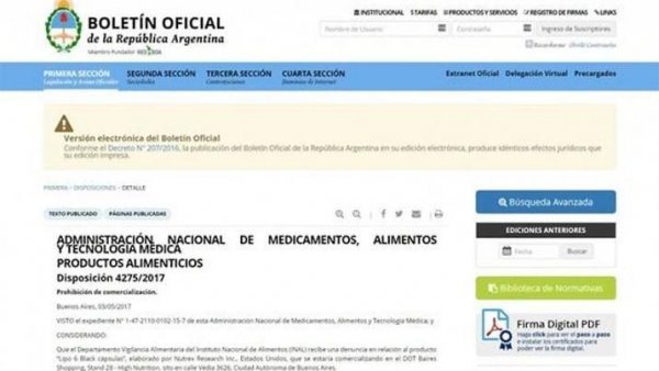 A través de la Disposición 4275 se prohibieron los siguientes productos: "Fat Destroyer, marca Lipo 6 Black, ultra concentrate cápsulas", elaborado por Nutrex Research Inc., "Dehydroepiandrosterone Supplement, marca Ultimate Nutrition DHEA", "Dietary Supplement, marca Black Mamba Hiperpush", "Dietary Supplement, marca Dablos ECA Fire Caps", "Dietary Supplement Super Thermogen, marca Muscletech Hydroxycut Hardcore", "Fast – Acting liquid capsule Nutrex Research, marca Lipo 6 Accelerated Fat – Loss Formula" y "Suplemento dietario a base de Tribulus Terrestris, Marca Star Nutrition".