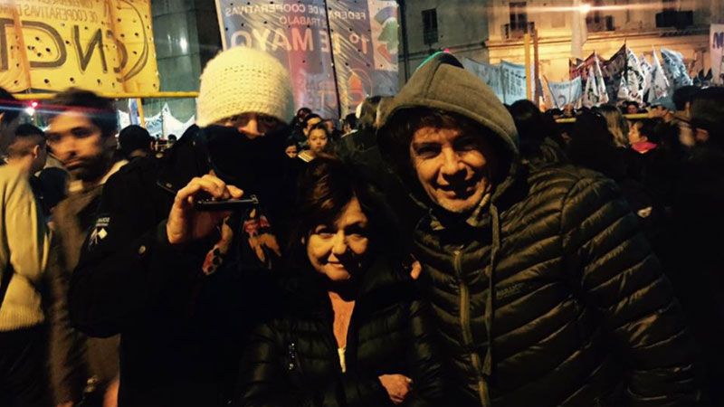 Allí, con la armónica y la guitarra colgadas entonó una de sus canciones alusivas a la dictadura militar, Todo está guardado en la memoria. Al finalizar invitó a Raúl Porchetto, otro músico que debía cantar en el acto, y juntos cantaron Bajaste del norte.