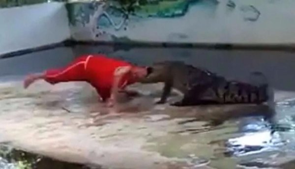 Sin embargo, luego de un minuto de preparación y cuando finalmente coloca su cabeza en las enormes fauces del depredador de ríos, éste las cierra y comienza a sacudirlo de manera frenética. La audiencia comienza a gritar y a desesperarse, según consignó el diario inglés DailyMail.