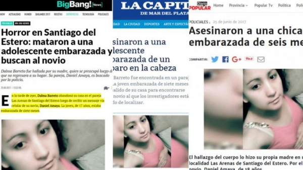 "Asesinaron a una adolescente embarazada de un disparo en la cabeza", tituló La Capital de Mar del Plata. "El hallazgo del cuerpo lo hizo su propia madre en un descampado; por el hecho detuvieron al novio", reflejó Diario Popular, entre otros.