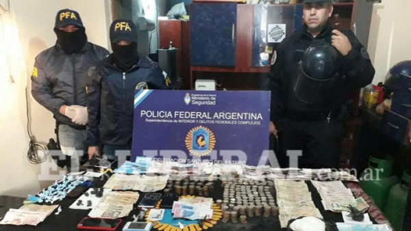 Los federales también confiscaron gran cantidad de dinero en efectivo de baja denominación ($12.000 en total), balanzas, elementos de corte y teléfonos celulares.