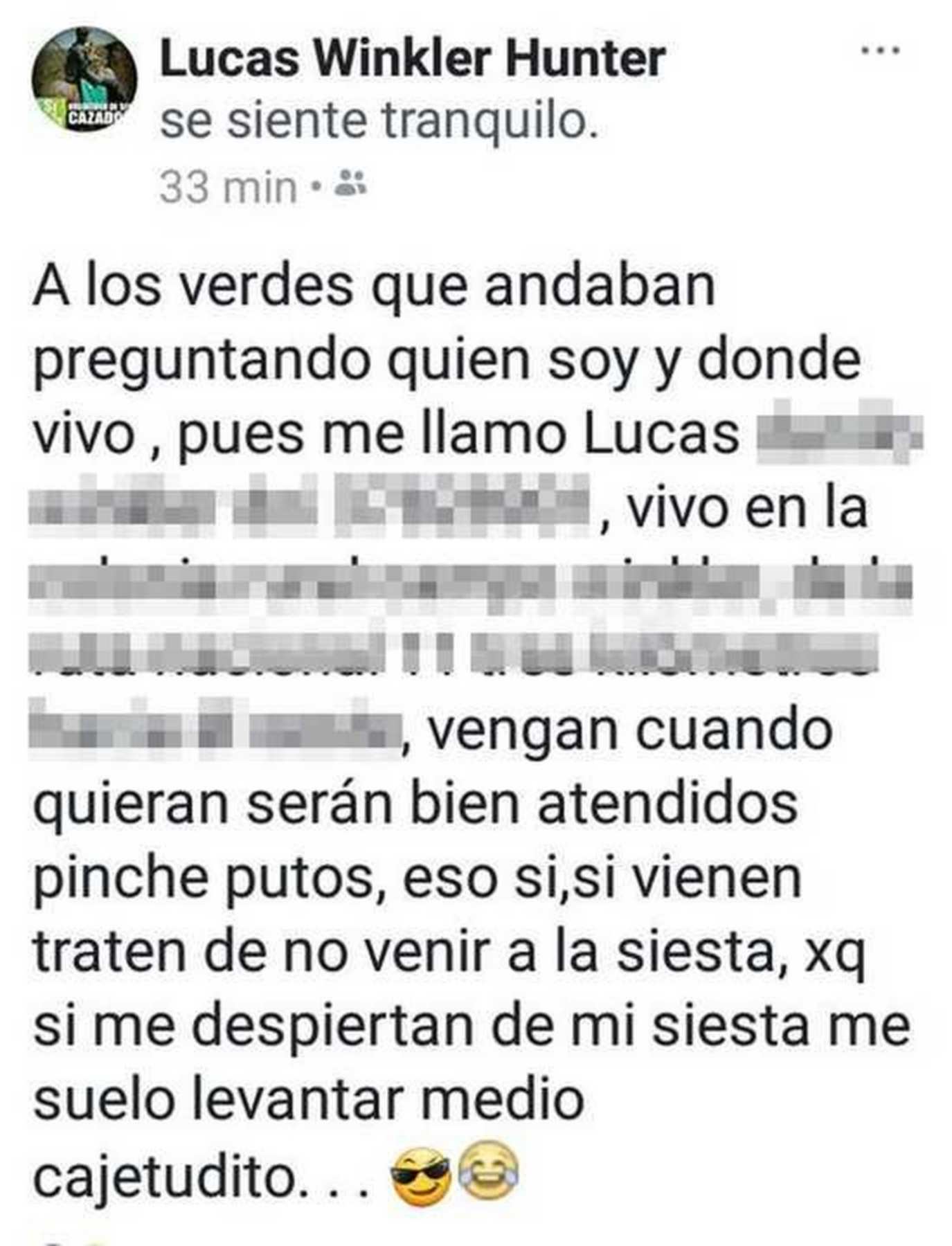 Las publicaciones de referencia tenían además comentarios amenazantes y burlones dirigidos hacia el personal policial. “Cuando quieran vengan a buscarme putos... pero traten de no venir a la siesta, porque si me despiertan suelo levantarme medio cajetudito”, decía uno de los posteos.