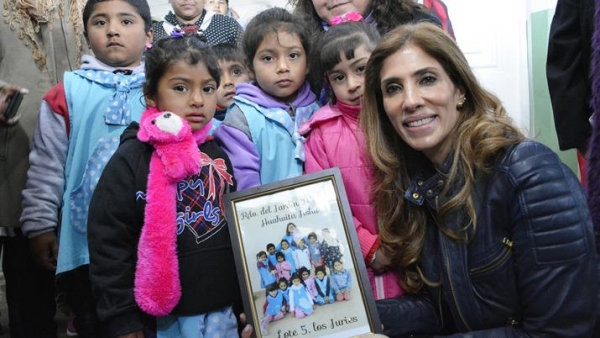 A continuación, la Primer Mandataria se trasladó hasta el sector del patio cubierto en donde estuvo junto a los pequeños del Jardín de Infantes, que contaban con su nuevo edificio.