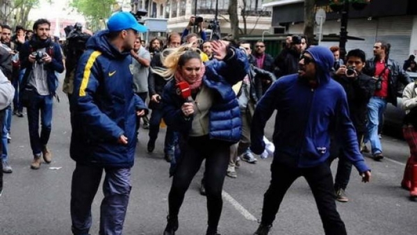 Los violentos fueron excluidos entre corridas e insultos por Avenida de Mayo, donde golpearon a personas que se desconcentraban por la zona, entre ellos a una periodista del canal de noticias de Crónica TV y a un colega de América TV, al tiempo que también vandalizaron un móvil periodístico de C5N.