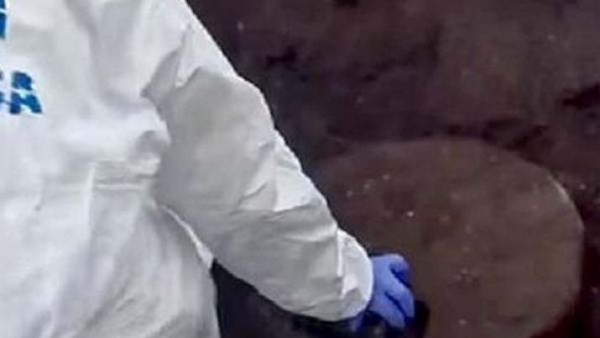 El barril estaba tapado con cal y enterrado en el patio del lugar.