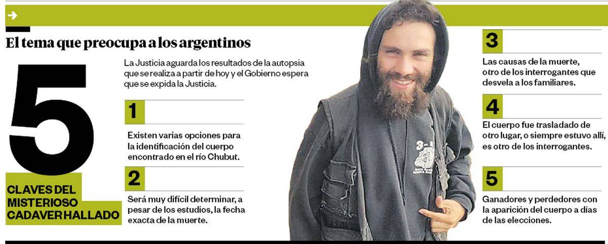 Además, entre sus prendas estaba el DNI de Maldonado, aunque eso no puede tomarse como una identificación positiva.