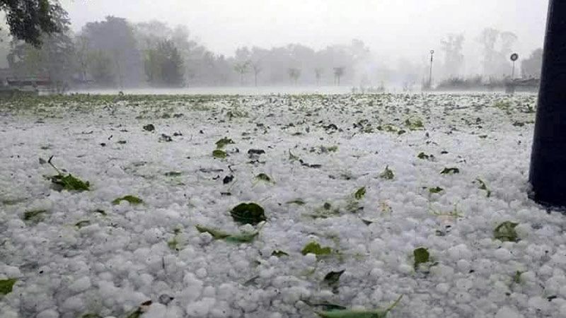 Pasadas las 16.40, una fuerte tormenta con granizo castigó a las ciudades de Almafuerte, Embalse, y La Cruz, al suroeste de Córdoba capital. La piedra fue de tal magnitud que dañó árboles y también rompió bienes materiales en viviendas y comercios.
