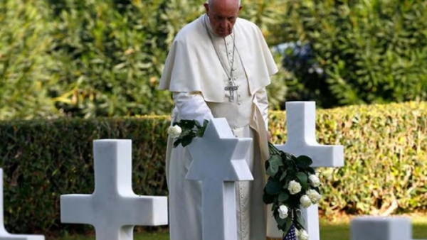 Si bien en los años anteriores Francisco había celebrado el Día de los Difuntos en cementerios de Roma, esta vez prefirió desplazarse hasta el cementerio norteamericano de combatientes de Nettuno, a 76 kilómetros al sur de esta capital, donde se encuentran sepultados 7.861 soldados y enfermeras estadounidenses, caídos en Italia durante la Segunda Guerra Mundial (1939-45).
