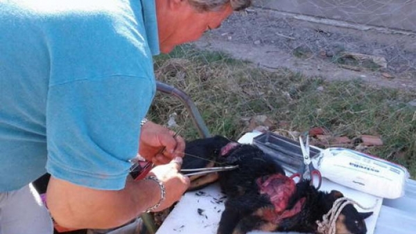 El animal que estaba debajo de un árbol en Zapiola y Avenida del Trabajo, del barrio Rivadavia, fue atendido y se procedió a coserlo y curarlo. Varias familias se acercaron y se ofrecieron para llevarlo y cuidarlo.