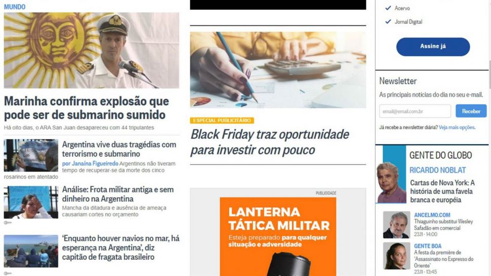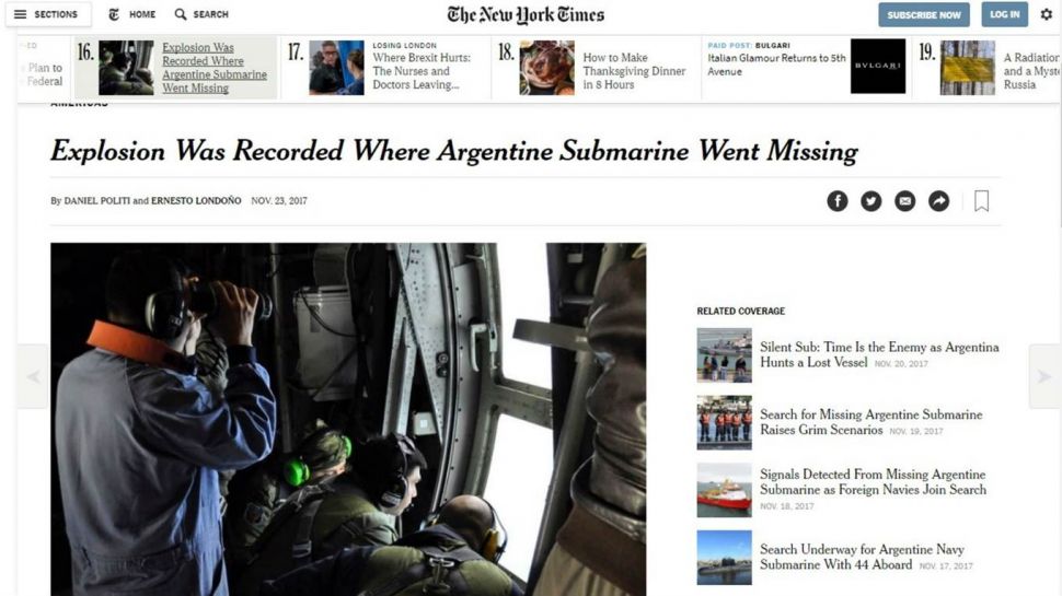 La noticia del submarino desaparecido no aparece destacada en el portal del diario norteamericano.