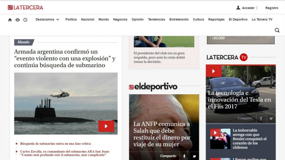 El diario chileno recoge los dichos de Balbi, durante la conferencia de prensa.También tiene un detalle punto por punto de los hechos más destacados de la desaparición del ARA San Juan.
