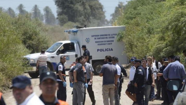 Dos adolescentes que trampeaban pajaritos, ayer descubrieron dos cuerpos en una finca en La Banda, a la vera de la ruta 34: una ordenanza de un jardín de infantes y su hijastro, quemados y degollados.