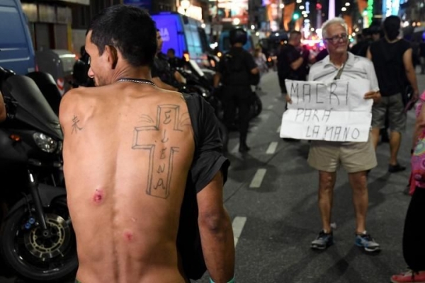 Ante este panorama, la Gendarmería, Policía Federal y efectivos de la Policía de la Ciudad montaron un gran despliegue de personal en la calles del centro, que incluyó la movilización de carros hidrantes, camiones y motos.