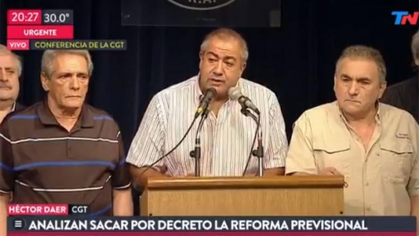 La CGT analiza en estos momentos una posible medida de fuerza nacional si se confirma la versión de que Mauricio Macri firmará un DNU para imponer la reforma previsional.