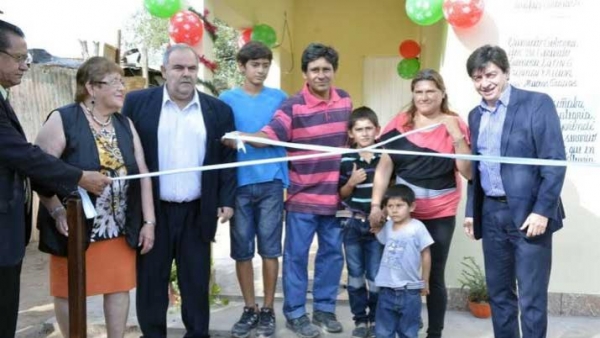 El acto central se realizó en el barrio Industria de la Capital en la vivienda de Carlos Barrientos. El ministro de Obras y Servicios Públicos, Arq. Daniel Brue acompañado por el subsecretario de Obras, Jorge Zuain realizaron el corte de la cinta para dejar habilitadas todas las viviendas.