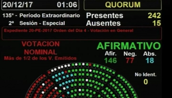 Con votos 146 a favor, 77 en contra y 18 abstenciones, la iniciativa de Cambiemos dio al Gobierno su segunda victoria legislativa en un dos días.
