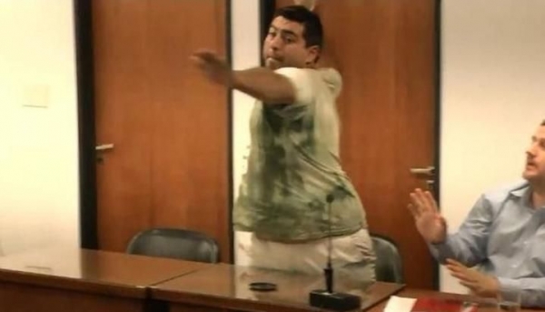 Un grave episodio se produjo en una de las salas de audiencias del poder judicial de Viedma, Río Negro, cuando un hombre acusado de incitar a realizar saqueos en supermercados de esa ciudad se enojó al escuchar la resolución del juez indicando que seguiría detenido y le arrojó un vaso de vidrio al fiscal, provocándole heridas leves.
