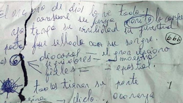 Durante los allanamientos que se concretaron con la colaboración de la Unidades K9 -Canes- de Río Negro y San Luis se secuestraron numerosos manuscritos con, los cuales serán analizados por la División de Scopometría de la Policía Federal, para tratar de determinar cuál de los sospechosos es el autor de esas anotaciones.
