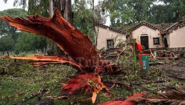 En el parque San Martín se quebró un viejo eucalipto. El tronco, de más de 20 metros, cayó en la zona donde se encuentra un espacio cultural de la Municipalidad de Salta