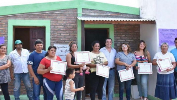 La ONG encargada de construir las viviendas fue la Asociación "Por un Futuro en Cambio" a cargo de su presidenta Teresita Argañaraz.