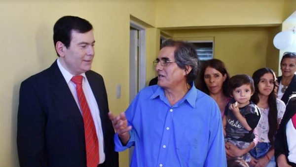 La habilitación de las viviendas fue en la flamante casa de Tito Gerónimo Mansilla, en el Bº Libertad de la Ciudad Capital, junto a su esposa y sus cuatro hijos, “Estoy muy alegre porque gracias a Dios tenemos nuestro nuevo hogar. Antes de esto vivíamos en un ranchito y sufríamos mucho del calor que era inaguantable. Ahora podemos vivir tranquilamente con mis hijos y van a tener un techo seguro para toda la vida. Mi familia está muy contenta con la casa, nos cambió la vida para bien”, manifestó el beneficiario que, además, contó que “en la cabalgata del año pasado, en la cual participó el Gobernador Dr. Gerardo Zamora en el Bº San Martín, le entregamos una nota y nos vinieron a construir la vivienda. Estamos muy agradecidos por ese noble gesto y le pedimos que siga trabajando por los pobres, como lo viene haciendo”.