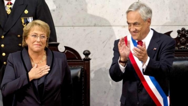 Tal y como hace ocho años, cuando puso fin a una hegemonía de gobiernos de izquierda, Piñera recibió la banda presidencial de parte de Bachelet, quien le lega un paquete de reformas sociales, algunas aprobadas y otras aún en trámite, con las que intentó borrar los cimientos instalados por la dictadura de Augusto Pinochet (1973-1990).