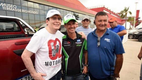 El mandatario provincial recorrió las instalaciones mientras se desarrolla el Superbike, en el arranque del temporada del circuito termal. Allí tuvo tiempo de charlar con el piloto Sebastián Porto, ex corredor de Moto GP y campeón del Superbike 600cc, en 2013.
