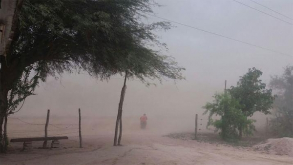 El viento comenzó a soplar del sector sur a 29 kilómetros por hora, lo que provocó una tormenta de tierra en varios sectores de Capital, además de la visibilidad de apenas un kilómetro.