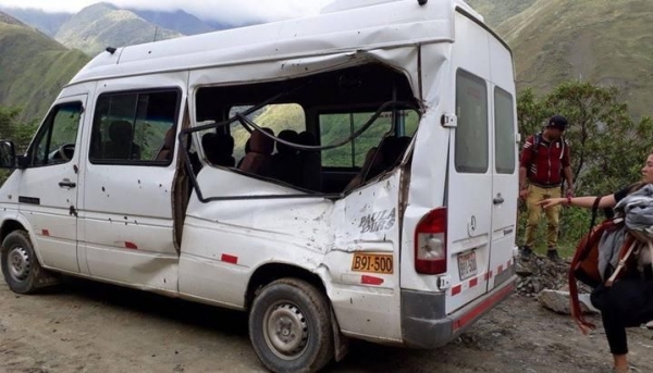 El minibús de placa B9I-500, de uso turístico y conducido por Marco Antonio Pacheco Huillc, de 37 años, viajaba por el sector de Cocalmayo, distrito de Santa Teresa, cuando fue impactado por "una inmensa piedra", reportaron fuentes de la policía local, que señalaron que "la roca puede haber caído por las fuertes lluvias que hubo en la región en los últimos días". Hace una semana dos derrumbes en la vía Huancarani-Paucartambo mataron a un obrero y a una mujer.
