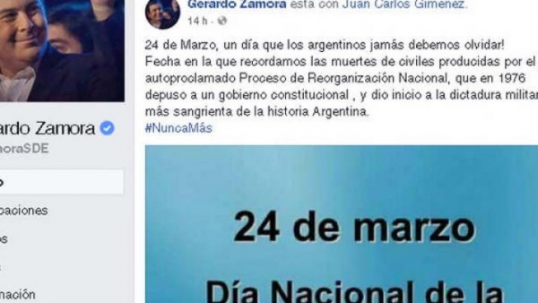 En una fecha tan sensible como es el Día Nacional de la Memoria por la Memoria y la Justicia, el gobernador la provincia, Gerardo Zamora, publicó en su cuenta oficial de Facebook un mensaje dirigido a la ciudadanía en el que llama a tener memoria del terror que sembró la dictadura que depuso al gobierno constitucional de 1976.