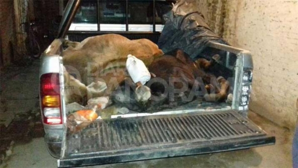 A consecuencia los efectivos lograron demorar a 5 personas que se trasladaban en in camioneta Chevrolet S10 color gris, con numerosos elementos de faena y un animal vacuno en la caja de la misma, sin poder justificar su propiedad.