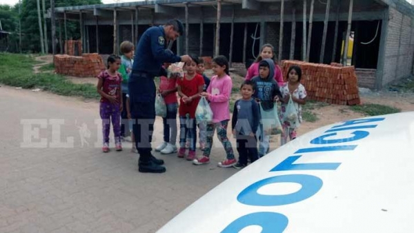 Personal de guardia en la unidad móvil 782, realizó un recorrido por avenidas 27 de abril y Gral Paz, repartiendo golosinas al los pequeños.
