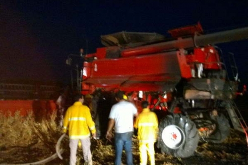 Un grupo de trabajadores ayer experimentó un momento de tensión, al incendiarse una máquina cosechadora.