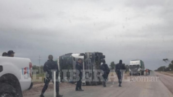 Por causas que se tratan de establecer, al llegar a la altura de la localidad de Puesto de Los Marcos, distante 25 kilómetros de la ciudad de La Banda, el pesado transporte protagonizó un violento vuelco.