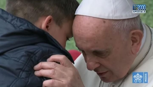 Ante esta situación, el papa Francisco le animó a que le dijera su pregunta al oído, le abrazó y ambos conversaron durante algunos minutos. Posteriormente, el pontífice pidió permiso al niño para revelar su inquietud.