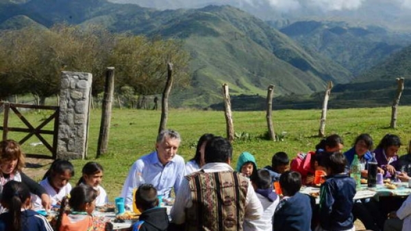 En el marco de su visita a Tucumán, el presidente Mauricio Macri visitó una escuela de montaña en la zona de Anfama, donde compartió un almuerzo con profesores y alumnos.
