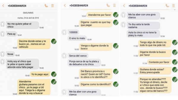 La educadora contó que los escritos provenían del teléfono de la adolescente e indicaban que estaba secuestrada y para que "volvieran a verla con vida" debían hacer entrega de $100.000 pesos en efectivo.