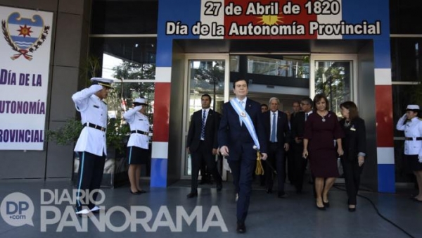 El primer mandatario provincial hizo hincapié en la ejecución de obras públicas y la estabilidad financiera de la provincia, al tiempo que subrayó el "impecable manejo" de los fondos provincial de su predecesora. "Quienes tenemos la tarea de administrar debemos hacerlo con responsabilidad, tal como lo hizo hasta el año pasado la gestión de la gobernadora quien nos ha permitido no caer en déficit ni endeudamiento"