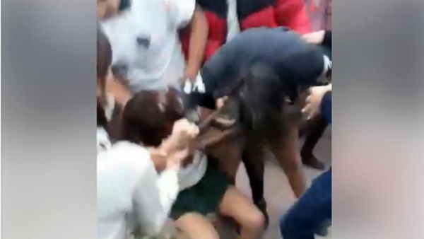 "¡Vos le pegaste a mi hermana!", gritaba una de las jovencitas mientras sometía a golpes de puño en el rostro a su contrincante, mientras que otra -que se hallaba de pie- vociferaba "¡Matala, matala!".
