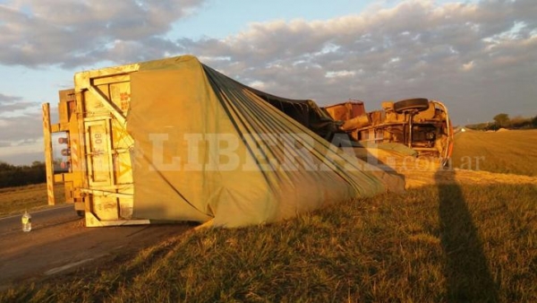 El pesado rodado circulaba por la arteria antes mencionada cuando, por causas que aún se tratan de establecer, el conductor perdió el control del vehículo y terminó volcado sobre la banquina, esparciendo gran parte de lo que transportaba.