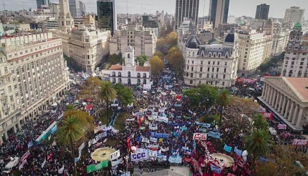 Tiempo de lectura: 2 minutos, 59 segundosOrganizaciones gremiales y sociales reclamaron un "paro general" frente al "riesgo social" que causan las políticas económicas del Gobierno nacional, al tiempo que cuestionaron la suba de tarifas y el acuerdo con el FMI. Participaron más de 200 mil personas